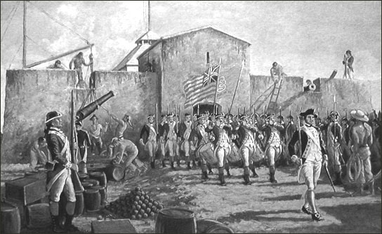1776 - Marines leaving Fort Montagu.