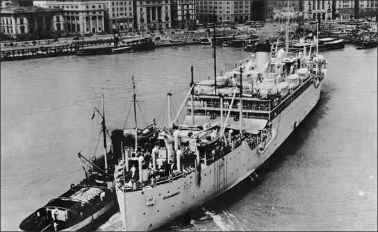 1937 - USS Chaumont arrives at the Bund, Shanghai.